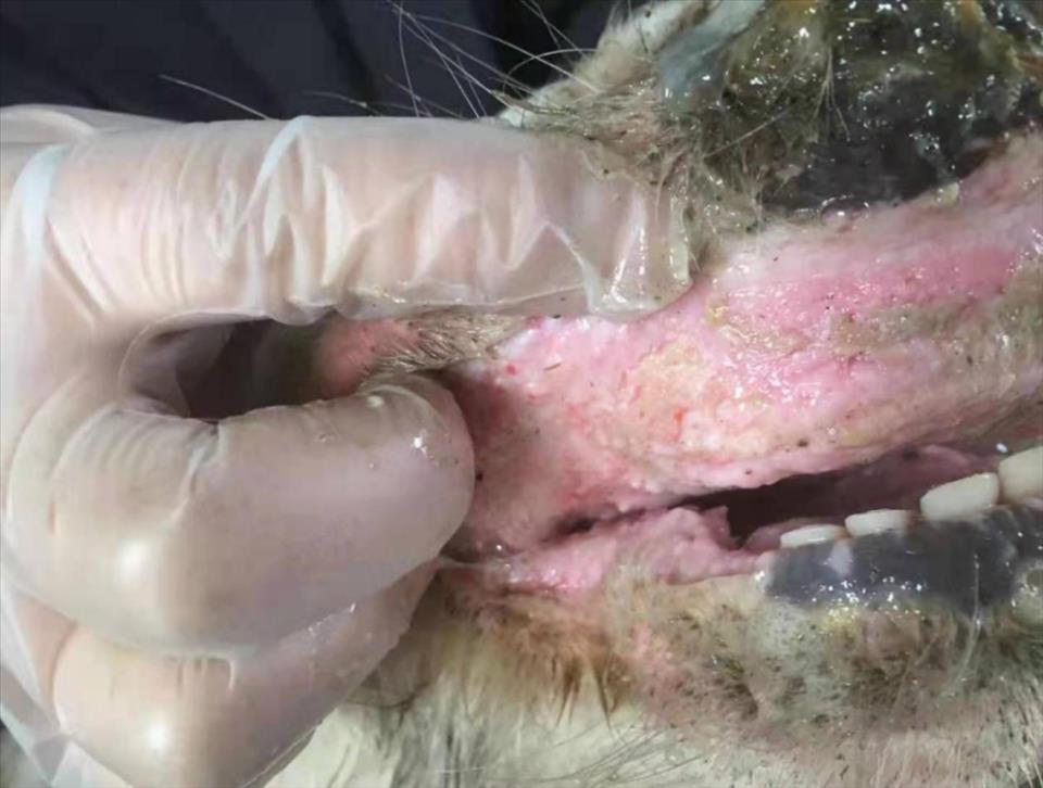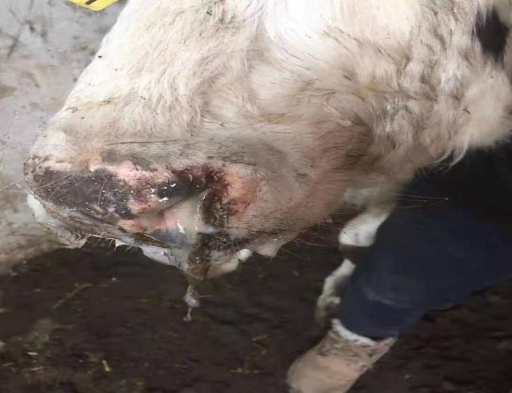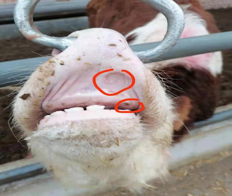 身体消瘦,鼻镜、鼻腔黏膜、齿龈、上颚、舌面两侧及颊部黏膜有糜烂及浅溃疡,严重病例在咽喉黏膜有溃疡及弥散性坏死。特征性损害是食道黏膜糜烂,呈现大小不等的形状与直线排列。瘤胃黏膜偶见出血和糜烂,第四胃炎性水肿和糜烂。