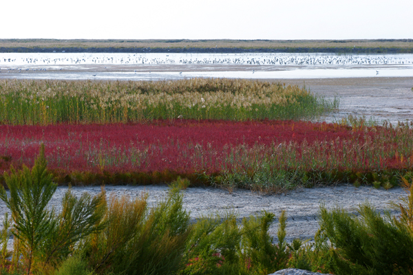 乌梁素海野生植物资源丰富,堪称“天然水生植物公园”,保护区内有大型水生植物共6科6属11种,以芦苇和龙须眼子菜、穗花狐尾藻为优势种,丰富的野生植物为各类鸟类栖息提供了良好的环境。
