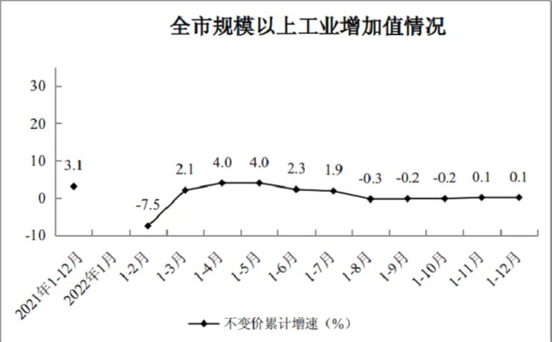 工业生产平稳运行。2022年,全市规上工业增加值同比增长0.1%。从轻重工业看,轻工业增加值同比增长10.2%,重工业增加值同比下降2.5%。从三大门类看,制造业同比增长13.6%,拉动规上工业增加值增速6.4个百分点;采矿业同比下降17.2%;电力热力燃气及水的生产和供应业同比下降5.1%。从行业看,26个工业行业大类中,有18个行业增加值实现正增长,增长面69.2%。从产品产量看,54种主要工业产品中,乳制品、多晶硅等28种产品产量增加,增长面51.9%。