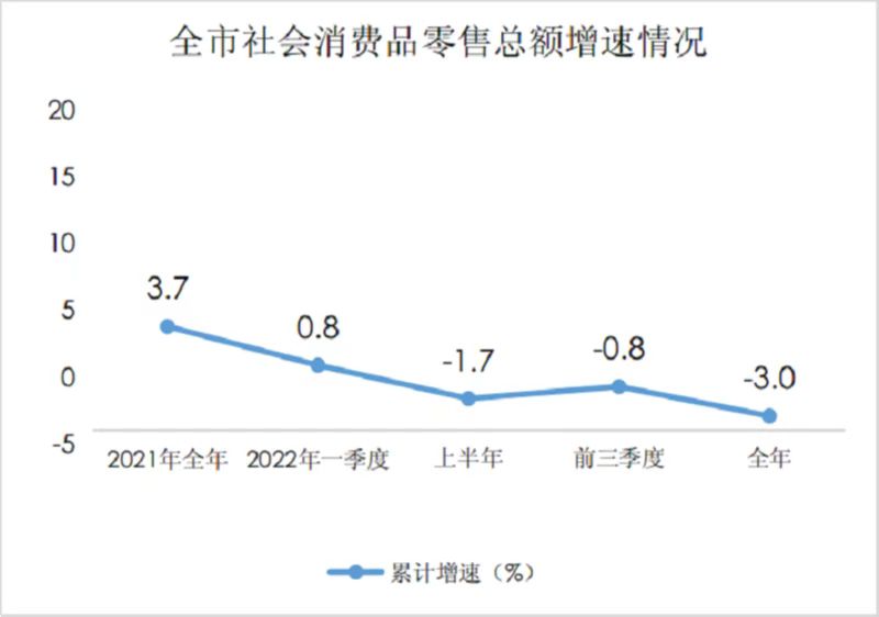 消费需求释放缓慢。2022年,全市社会消费品零售总额同比下降3.0%,与1-11月份持平。分城乡看,城镇实现零售额177.2亿元,同比下降2.6%;乡村实现零售额42.3亿元,同比下降4.7%。从销售行业分,批发业实现零售额64.7亿元,同比增长7.3%。零售、住宿和餐饮业分别实现零售额132.4亿元、0.6亿元、21.8亿元,分别同比下降5.2%、10.8%和15.5%。按商品类别分,19类商品中,11类同比增长。其中饮料类、金银珠宝类、中西药品类增势较好,同比分别增长9.3%、9.2%和32.0%。